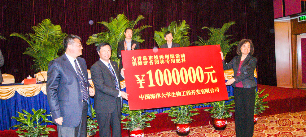 向青島世園會及市區(qū)園林綠化捐贈大量海藻有機(jī)肥,共建宜居城市。