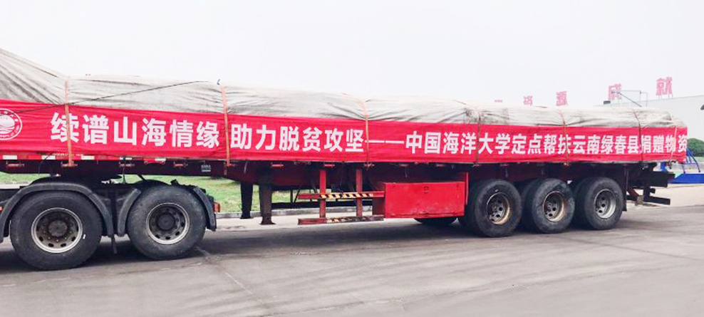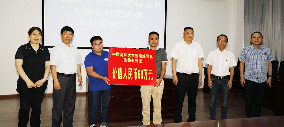 代表中國海洋大學(xué)捐贈給云南綠春縣價值60萬元的生物有機(jī)肥。