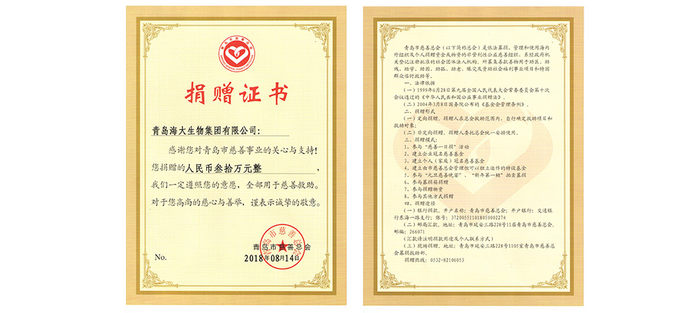 為青島農(nóng)業(yè)大學(xué)捐贈100萬元,設(shè)立"海狀元獎學(xué)金"。