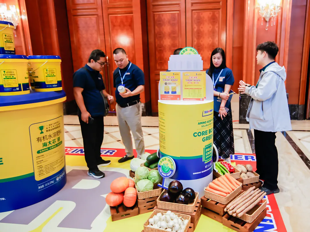 此外,峰會現(xiàn)場設(shè)有產(chǎn)品展示、洽談交流區(qū),應(yīng)用海大生物集團(tuán)最“芯”科技,集中呈現(xiàn)了海大生物海狀元海藻肥、溫喜魚蛋白肽、海谷特、傳奇以及出口SEAWINNER品牌五大系列部分新產(chǎn)品,涵蓋經(jīng)作和大田區(qū),繼續(xù)引領(lǐng)特肥行業(yè)發(fā)展。